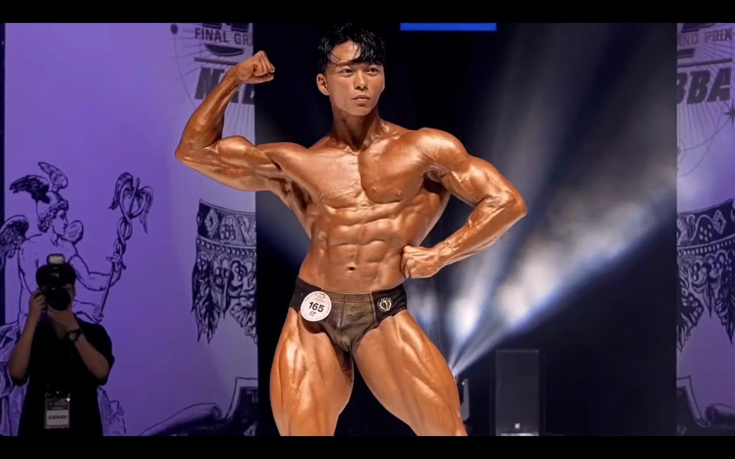 刚刚他拿下奥赛大学生健美双冠 这腿背无敌了 比赛